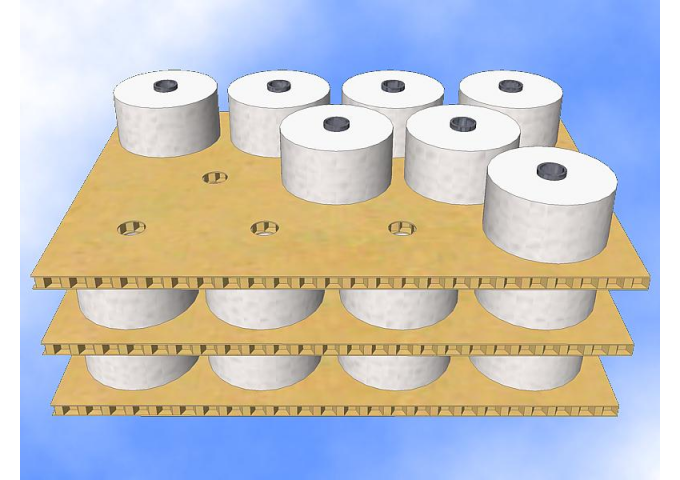 Es handelt sich um eine ökologische Papierwabenplatte die als Füllung, Fixierung und Schutz vor Beschädigungen dient. Vorteil: Sie ist sehr leicht, fest und ökonomisch interessant im Vergleich zu anderen Materialien.