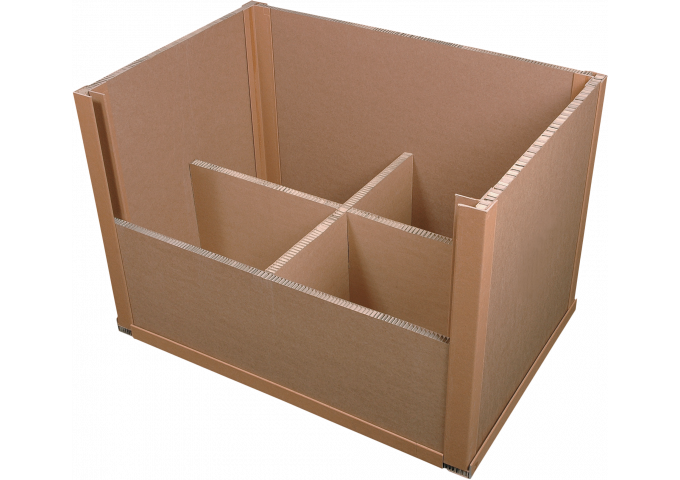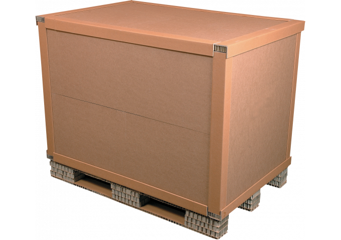 Lekki Box transportowy na bazie plastra miodu i litych narożników.